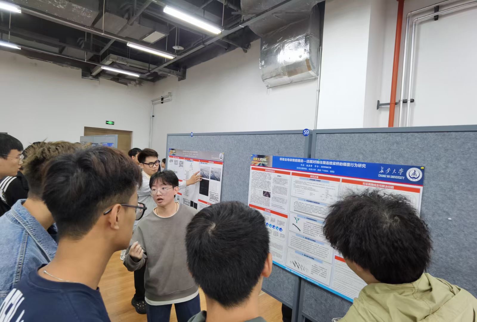 其他年级同学分批次集中观展,担任大众评审,分别从海报内容创新性、完整性,海报设计展示及海报解说5个方面进行线上打分,观展同学纷纷借此机会与现场学长学姐一同交流探讨,学习海报创作技巧和课题研究思路的同时,也对不同专业科研方向有了清晰的认识,同学们参与热情高涨,现场气氛热烈。
