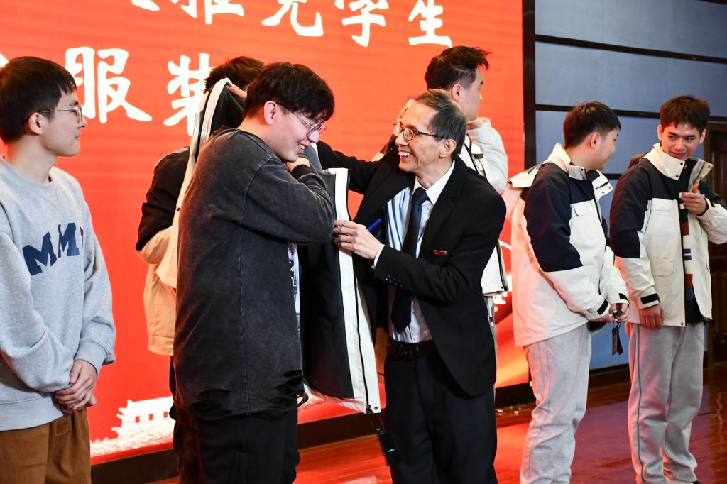 仪式上,学院为首届推免生赠送纪念礼物。FWA教授与导师代表们依次为学院首批7名直博生和37名推免生穿上纪念定制服装并合影留念。