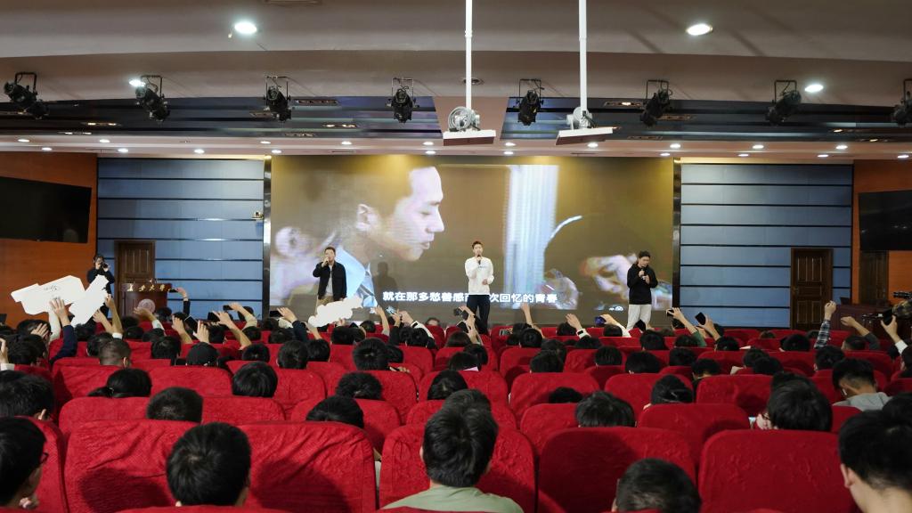 最后,学院2020级学生代表季书贤、纪裕伟、郭兆天演唱《光阴的故事》,伴随着由全体推免生录制的祝福视频,回忆青春时光,分享成长故事,与在场同学热情互动,将现场氛围推向高潮。