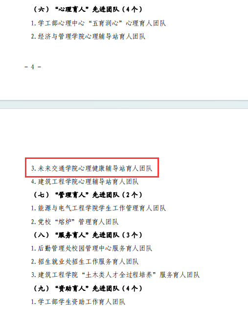 心理健康辅导站育人团队荣获学校“心理育人”先进团队。