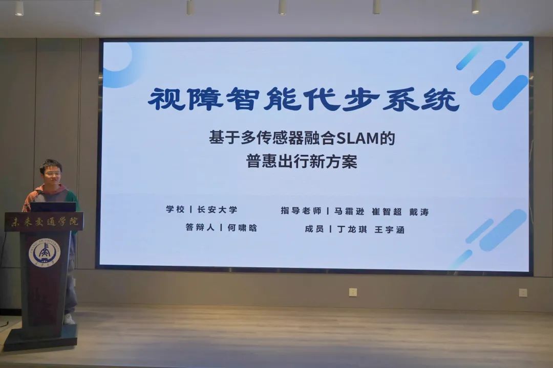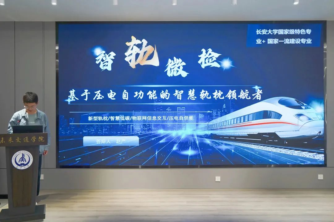 答辩现场,各项目团队围绕智慧交通、绿色低碳、人工智能、社会服务等热点前沿领域展开创新成果展示,覆盖机场运维、乡村安全、轨道交通、环保技术、普惠出行等多个应用场景,充分展现了未来交通学子跨学科融合的创新思维与实践能力。答辩过程中,各团队通过PPT演示、实物模型及数据推演,清晰阐述项目背景,生动展现技术亮点与社会价值,彰显了创新性与落地潜力。