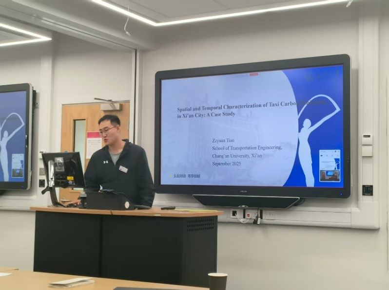 田泽源围绕碳排放数据处理与分析方法作题为“Spatial and Temporal Characterization of Taxi Carbon Emissions in Xi’an City: A Case Study”的报告,展示了西安市出租车碳排放的时空动态及其影响因素。研究通过隐马尔可夫模型与多源数据空间匹配,结合COPERT模型进行排放估算,实现了排放热点时空可视化与SHAP因子分析,揭示了出租车碳排放的深层机制。田泽源指出,碳排放时空异质性对城市交通管理、低碳出行政策与可持续战略制定具有重要参考价值。