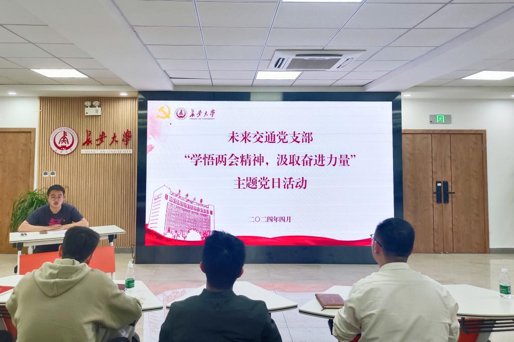 为巩固拓展学习贯彻习近平新时代中国特色社会主义思想主题教育成果,进一步凝聚共识、解放思想、积极作为,4月8日晚,未来交通党支部在北校区朝晖园学生社区示范性园区团体辅导室举行“学悟两会精神,汲取奋进力量”主题党日活动。未来交通党支部组织委员刘志兴、支部全体学生党员参与。活动由学生党员季书贤主持。