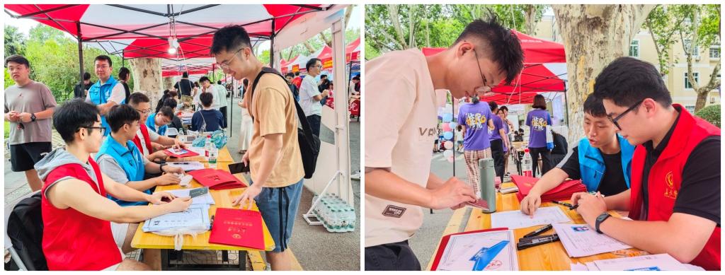 迎新过程中,学生党员主动发挥担当精神,积极参与迎新帐篷点的物资准备和布置,团结协作高效完成迎新准备工作。随着2025级新同学的到来,学生党员主动帮助新生搬运行李,引导新生完成报到流程,扫码注册、材料收集、信息核对,为新生报道保驾护航。“党员先锋岗”负责人季书贤表示,作为学生党员,通过先锋岗为新生服务,既践行了党员的初心,也让自己感受到了责任与价值,希望我们周到而热情的服务让新同学感受到归属感!