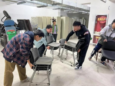志愿者们在公寓地下室大厅协助宿管整理杂物,认真完成各项整理任务,表现出了强烈的责任意识和突出的工作能力。同学们在沉浸式参与公寓管理工作中提升动手能力、实现自身价值,获得了宿管工作人员的一致好评。