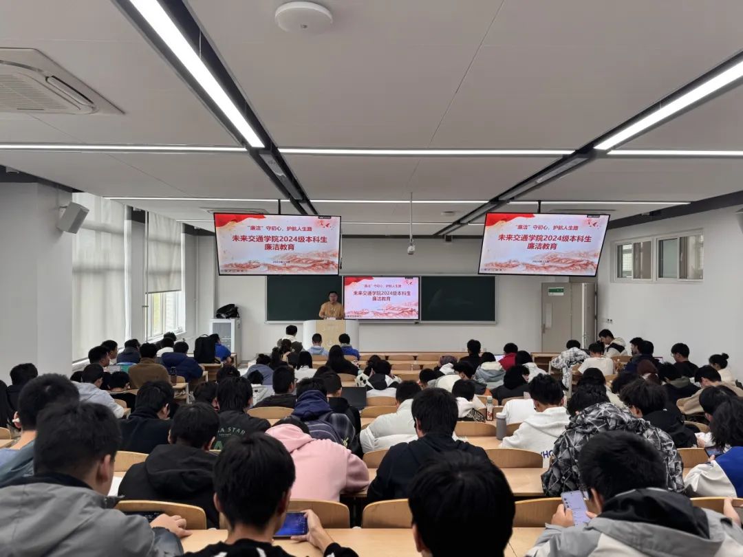 于北校区WH2208开展2024级本科新生入学适应教育(第10期)暨廉洁教育。学院2024级本科生辅导员刘志兴主讲,2024级全体本科生参加。