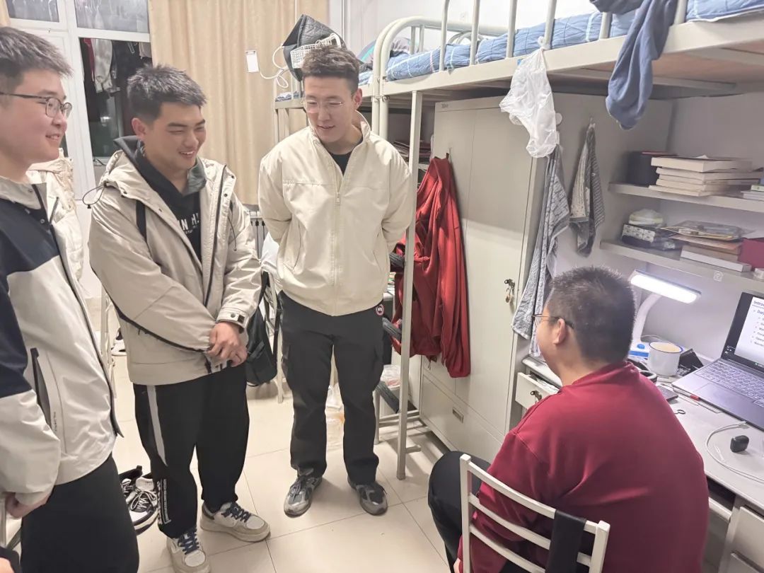 2024级本科生在新学期开启整洁、安全、温馨的成长新程,点燃大家的学习热情与生活活力,3月6日晚,班级朋辈导师张瑞轩、李郅、姚宇航、张子昊走进2024级本科生宿舍,了解同学们的生活、学习状态,听取同学们近期的困难和诉求。