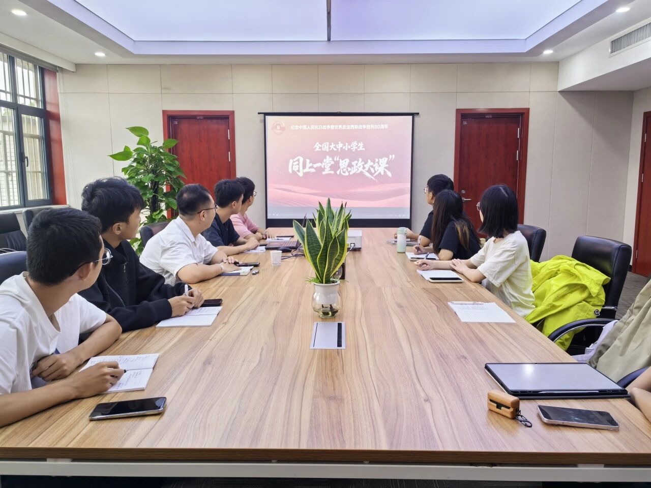 会上,全体与会人员学习习近平总书记在纪念中国人民抗日战争暨世界反法西斯战争胜利80周年大会上的重要讲话,共同观看了《同上一堂思政大课》并展开热议。此次思政大课通过讲述左权家书、刘老庄连等革命历史故事,激发了大家的家国情怀,让与会人员时刻铭记历史,并从中汲取力量,把抗战精神融入工作,以行动传承红色基因。