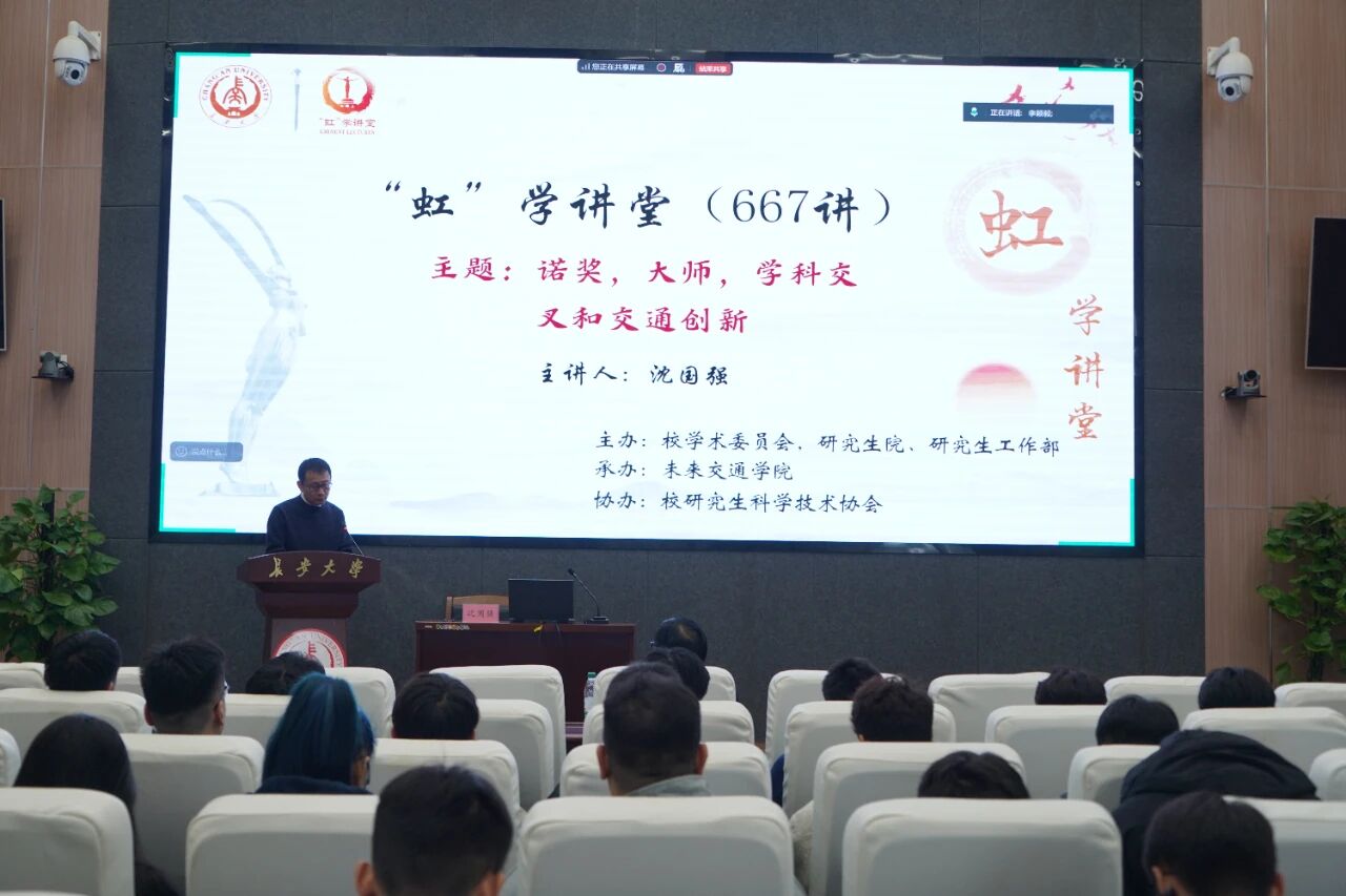 10月20日下午,由校学术委员会、研究生院、研究生工作部主办,Manga18 承办,校研究生科学技术协会协办的“虹”学讲堂第667讲暨“研途领航”系列论坛(第5讲)在北校区师生服务大厅第二报告厅顺利举办。浙江大学沈国强教授受邀作题为《诺奖,大师,学科交叉和交通创新》讲座,Manga18 与其他相关学院师生共130余人参加此次讲座,活动由Manga18 执行院长孙健主持。