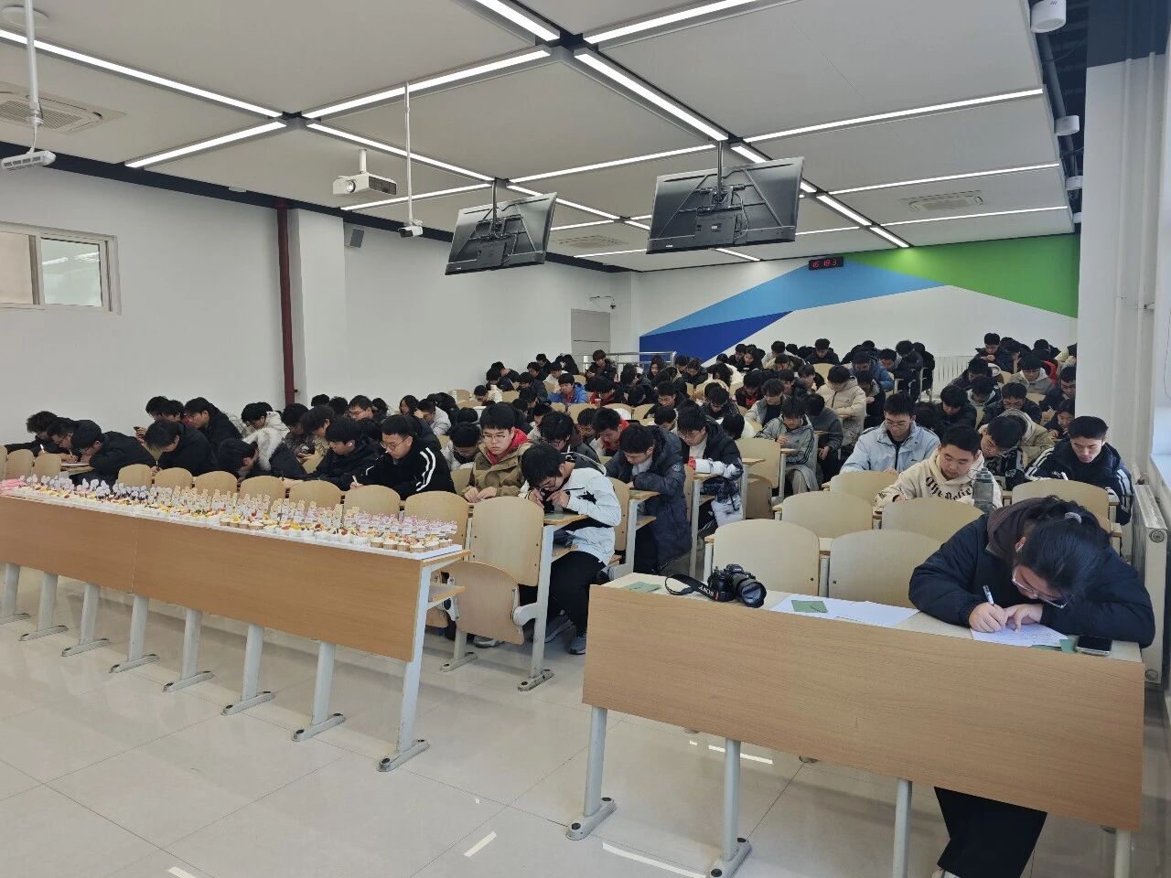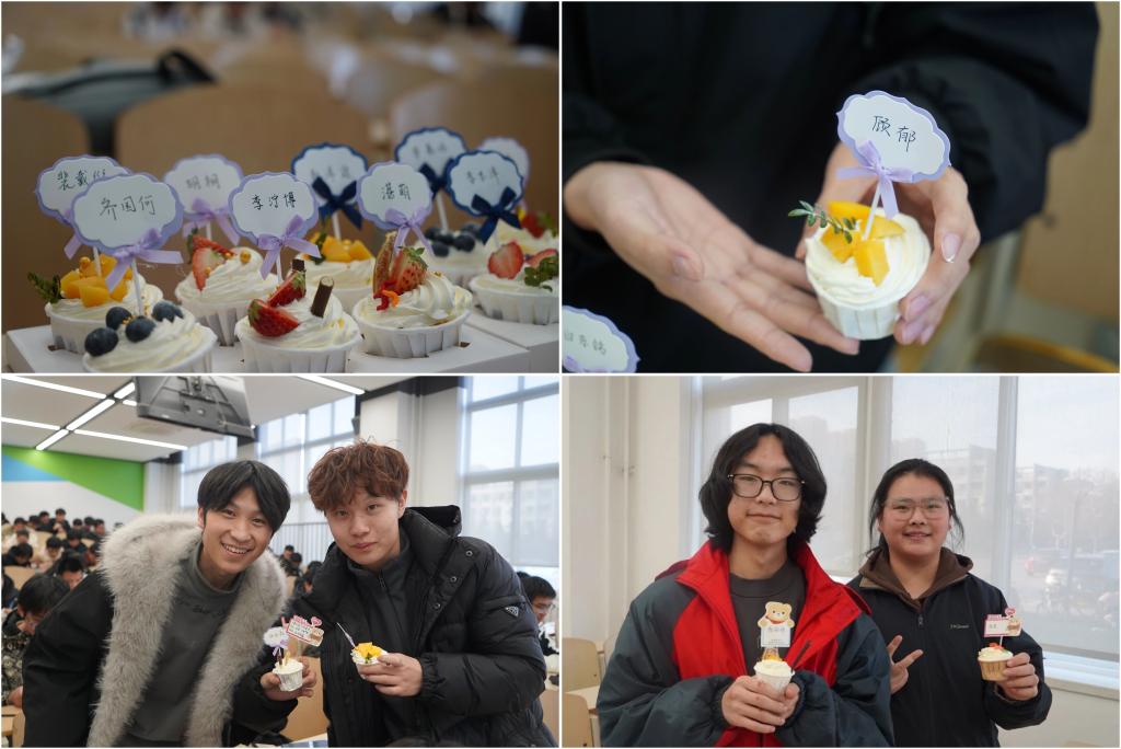 为表达新年祝福与深切关怀,范荣欣还为大家准备了一份特别的惊喜——写有每一位同学姓名的小蛋糕。121份小蛋糕在讲台前汇成一片,象征着Manga18