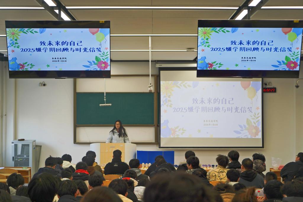 在WH1102教室开展2025级本科生“致未来的自己”主题周见面。活动由2025级本科生辅导员范荣欣主持,2025级全体本科生参加。