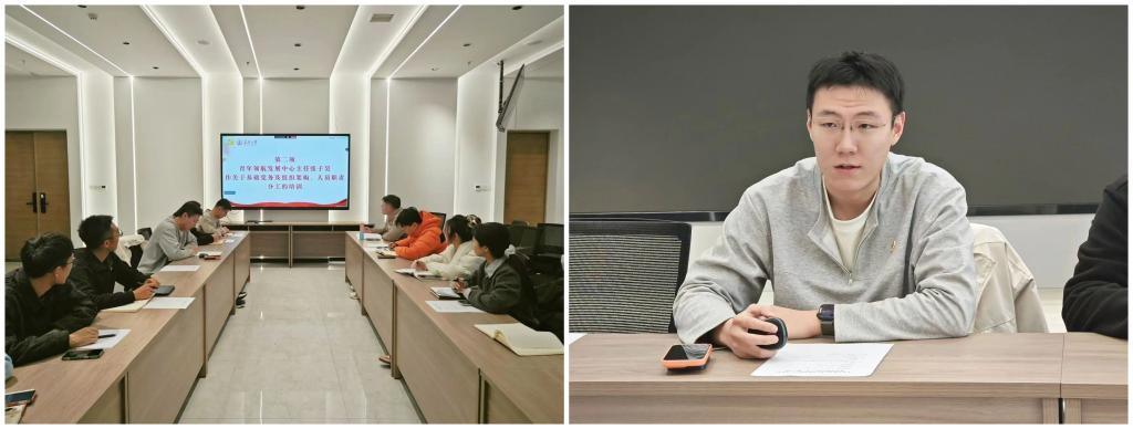 院青年领航发展中心主任张子昊就基础党务及青年领航发展中心组织架构、人员职责分工进行培训。他详细介绍党支部定位、基本任务等知识,并以学院实际工作开展情况为例,详细讲解党支部工作机制。他对办公室、秘书处和实践部三个部门的工作进行了详细介绍与明确分工。