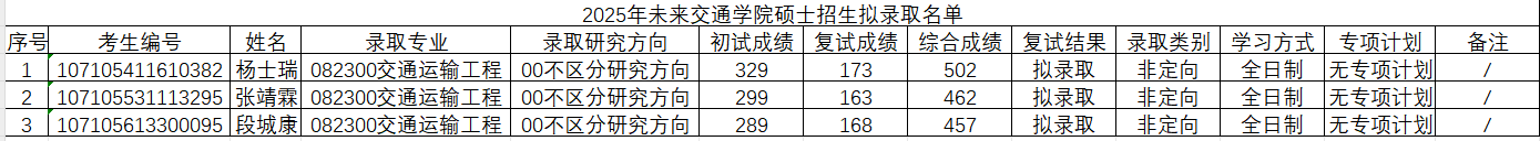 2025年硕士统考生名单公示如下: