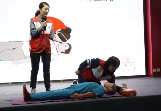 课上,培训讲师详细介绍在实际救援中,抓住“黄金四分钟”时间实施心肺复苏的重要意义、基本流程和步骤,并结合生活实际案例,分享AED使用以及创伤救护等。